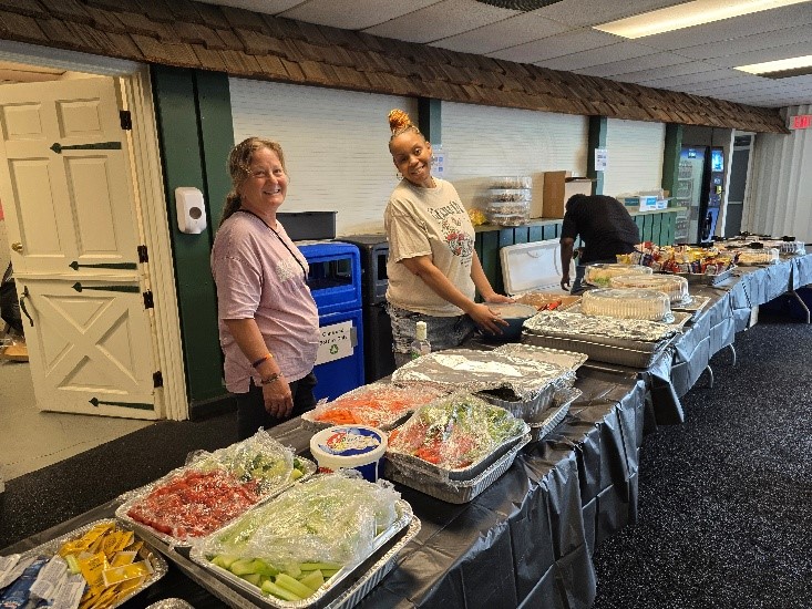 Behind the scenes, Kari Foster, Director of Kitchen Operations, coordinated a community-style potluck for the day. Each site pitched in, and the culinary specialists prepared a menu item, which included wraps, pasta salad, vegetables, fruit, and desserts. Transportation is often a challenge with organizational-wide events, but the sites’ Program Managers made sure their residents could attend. Turning Point rented a bus, Somerset and Madonna House collaborated, and some staff members even volunteered to drive. Libby emphasized how meaningful it was to see the staff pull together to make the event accessible to everyone.